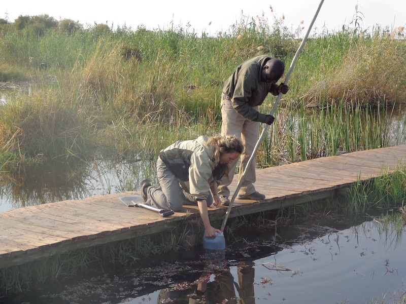 August 29, 2013. Selinda Camp, Botswana — To the trained eye Dr. Katey Walter Anthony looks out of place walking through the tall grass of the African plains. That’s because Dr. Anthony, a leading bio–geochemist and aquatic ecologist, spends much of her time doing research on the frozen tundra of Siberia where she studies what National Geographic referred to as “the dangerous, self perpetuating cycle: thawing permafrost caused by global warming releases methane, which contributes to global warming.” “We met Katey in Washington at the Explorers symposium a few years ago, and have stayed in touch since. This is exciting work that could change the way we use the planet,” says Dereck Joubert Explorer–in–Residence at National Geographic and CEO of Great Plains Conservation. On this trip Dr. Anthony, a National Geographic Emerging Explorer, has chosen a less hostile climate, the award–winning Selinda Camp, a seriously eco–friendly and beautiful safari camp on the banks of the eastern Selinda Spillway in the 320,000 acre Selinda Reserve of northern Botswana. This camp is the creation Great Plains Conservation, recent winners of Best Safari Properties in Africa by the Safari 2013 Awards and featured regularly in Architectural Digest and Condé Nast Traveler. While luxury is abundant, it is brought to safari guests through the use of reclaimed wood, concrete free construction, locally crafted furnishings, organic foods and all powered “off the grid.” Selinda installed biogas converters just after the Jouberts met Dr. Anthony. The goal is to leave no footprint. Dr. Anthony was in Botswana for a little R&R but also to advise Great Plains Conservation on how to optimize the use of their biogas system, something she has developed with fellow scientist T.H Culhane in part thanks to a NGS/Blackstone Ranch Institute Challenge Grant. The biogas systems used at the Great Plains camps convert methane gases produced by food waste into a fuel source for the kitchens. Dr. Anthony had previously shown that adding mud collected from the bottom of local lakes inside the arctic circle to digestors enhanced biogas production. After working with the amazed kitchen staff and management on how to improve biogas production, Dr. Anthony took a walk to the edge of the Selinda Spillway. In her own words, this is what happened next, “we stirred the mud in the river next to the Selinda boat dock, collected the large gas bubbles that came out of that mud, and lit the gas on fire. Since the gas ignited, we can be sure that the gas contained methane- the main energy constituent of biogas. This demonstrated that there are viable methane–producing microbes living in the mud right outside the lodge. Because these microbes are adapted to the temperature fluctuations experienced in this region, these microbes are a good addition to the [biogas] digestors.” The next logical question is why does an award–winning safari camp operator have a scientist advising them on their biogas system? It comes down to the true nature of Great Plains Conservation and the couple who run it. Behind the scenes is one of the great “power couples” of conservation, the award–winning filmmakers and National Geographic Explorers, Dereck and Beverly Joubert. |