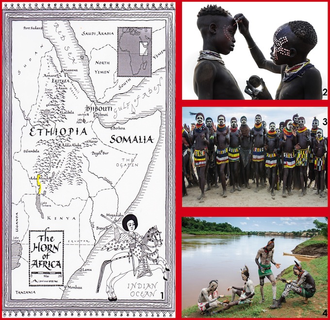 The upcoming expeditions for 2014 will include, Kara Jumping of the Bull Male Initiations in Ethiopia; Turkana Wedding in Kenya, Salampasu Initiations in Congo; Marriage Rituals in Somaliland; Moulids on the Nile in Egypt and Ceremonies of the Bamun Royal Kingdom in Cameroon. In August 2011 an expedition to Congo took them to photograph and film ceremonies in the Royal Kuba Kingdom as guests of the Royal family in the Democratic Republic of Congo. These Kingdoms are renowned for their sculptures in wood, raffia textiles, traditional palaces and magnificent costumes worn during rituals in the Royal court. The photographs will be published in their next book: “African Twilight.” In their recent trip to the banks of the Omo River in South West Ethiopia in 2013, Beckwith and Fisher recorded some of the last images and rituals of people who are being taken from their traditional homes on the banks of the Omo River in Ethiopia. |